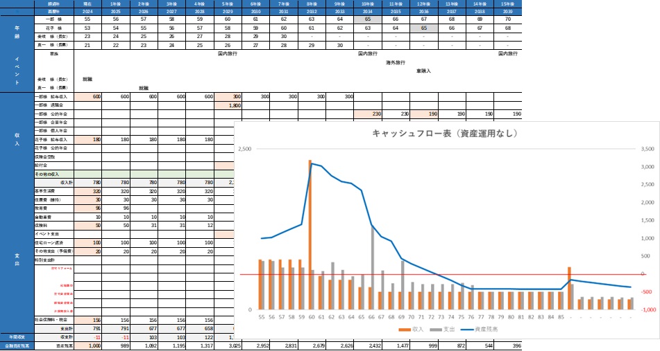 将来の家計収支をモデルケースで作ってみながら、ご自身の将来の家計収支(キャッシュフロー)について考えていただくきっかけになれば幸いです。